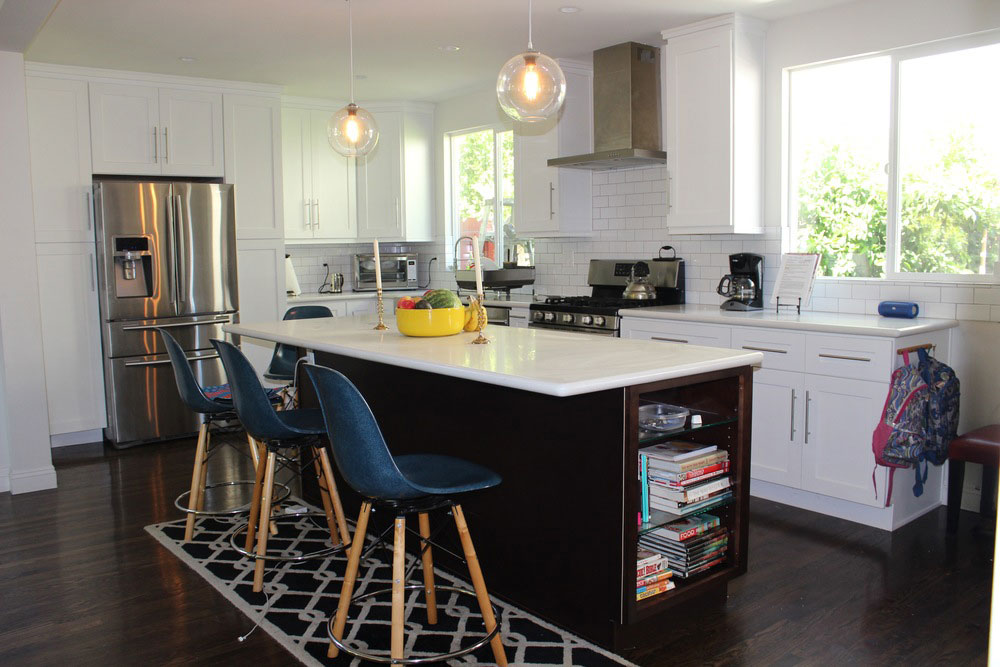 Extra workspace, storage, and a center for family-style cooking.